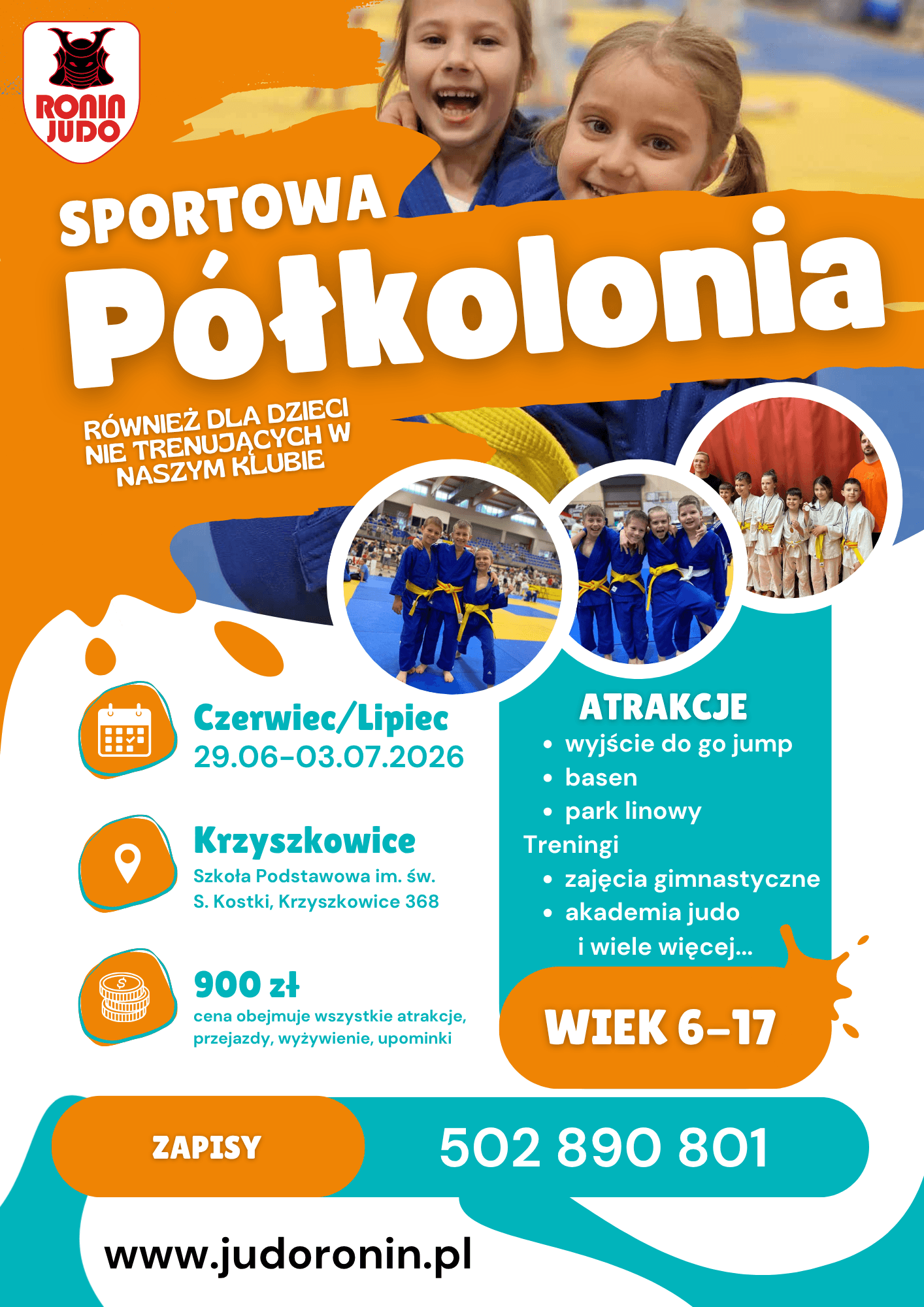 RONIN JUDO KRAKÓW ZAPRASZA NA WAKACYJNE PÓŁKOLONIE! Nasze półkolonie są otwarte dla WSZYSTKICH chętnych – nie trzeba być członkiem naszego klubu, aby do nas dołączyć! 🏆 Lato, słońce, ruch i mnóstwo zabawy! ✨ Czy można wymarzyć sobie lepszy sposób na spędzenie wakacji?